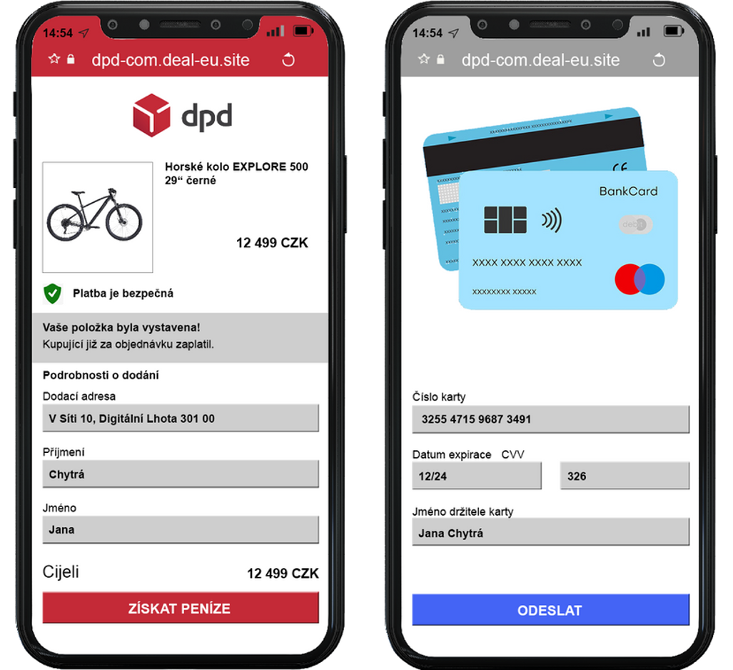 Prodáváš na bazarech nebo přes „socky“? Tak bacha! Podvodníci tě mohou oslovit s nabídkou, která vypadá příliš dobře na to, aby byla pravdivá. Tvrdí, že vše uhradí sami, ale aby ti mohli poslat peníze, potřebují znát číslo tvojí karty, na kterou údajně převedou peníze. Obvykle posílají odkaz, který vypadá jako stránka přepravní společnosti (např. DPD). Na této stránce tě vyzvou nejen k vyplnění adresy, ale také veškerých údajů z tvé platební karty. A pak už jen přihlížíš, jak ti mizí peníze z účtu.